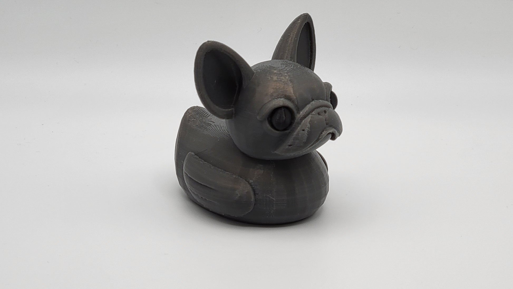 Introducing the French Bulldog Duck - a quirky fusion of two beloved pets. Watch this adorable pup quack its way into your heart. Perfect for dog and duck lovers alike. (Warning: May cause an uncontrollable urge to cuddle)