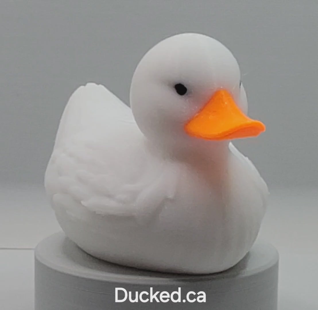 Our ducks are 3D printed using PETG, a durable and recyclable plastic material. It's lightweight yet sturdy, making it perfect for both display and fun use. Some are made using PLA depending on colour variation